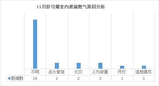 11月份平均每天发生燃气安全新闻不足2起,11月19日是全月的事故高发期,当日事故达4起。